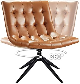 Amazon Com Volans Mid Century Swivel Home Office Chair Soft Faux Leather Armless Accent Chair For Living Room Office Bedroom Brown Home Kitchen